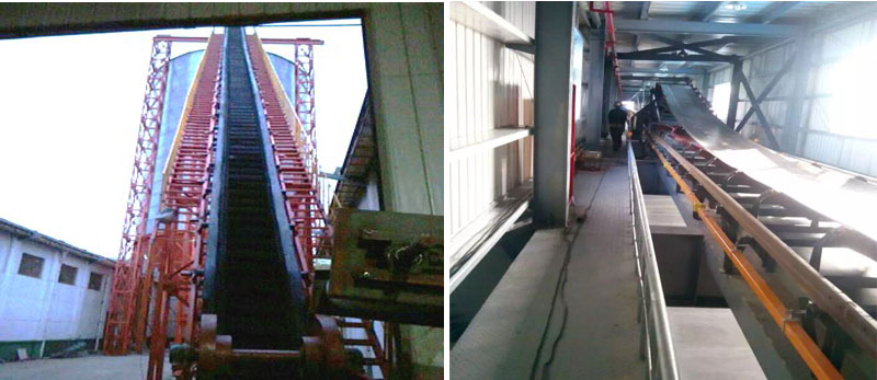 波狀擋邊輸送帶:在輸送機中起曳引和承載作用。波狀擋邊、橫隔板和基帶形成了輸送物料的"閘"形容器,從而實現(xiàn)大傾角輸送。