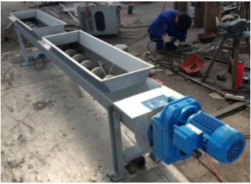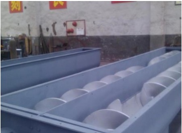 該雙管螺旋輸送機(jī)具有結(jié)構(gòu)緊湊、密封性好、卸料點(diǎn)布置靈活、進(jìn)料口不滯料的特點(diǎn),同時(shí)附加有攪拌機(jī)的功能。