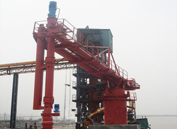 2、物料不斷進入垂直螺旋輸送機管道而被提升至臂架端部,經卸料口而被轉載到臂架螺旋輸送機上。