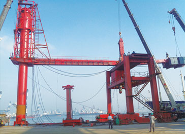 4、**后物料經門架上的水平螺旋輸送機而被轉載到與碼頭平行的前沿帶式輸送機上。